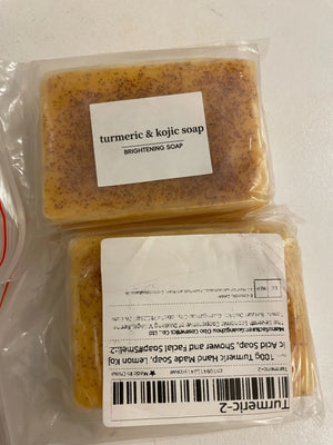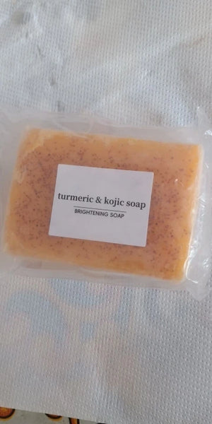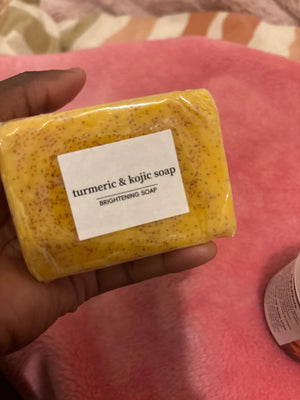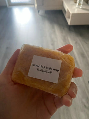 The soap uses turmeric and kojic acid to naturally enhance your skin's glow, reducing dark spots for a youthful appearance.